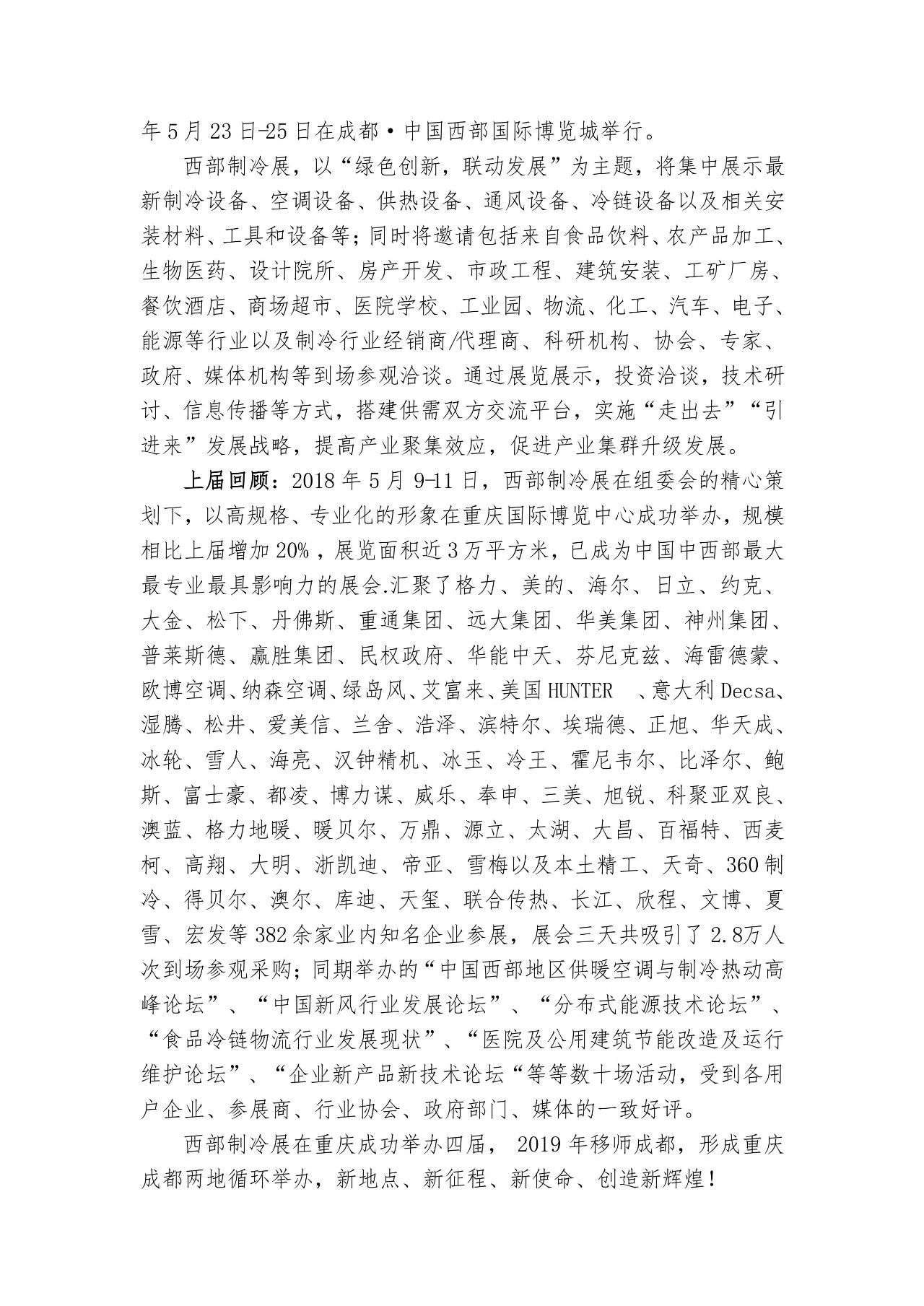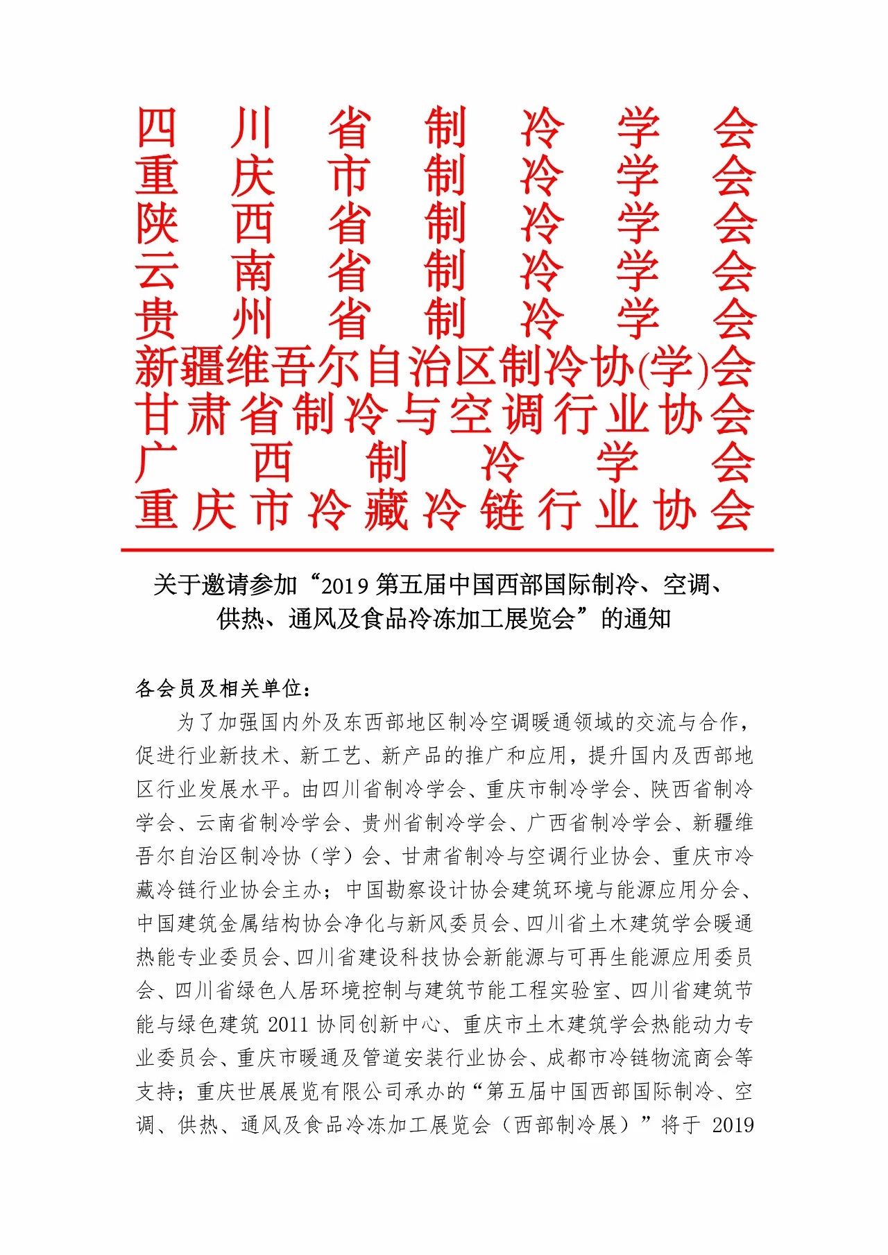 【邀請函·成都】2019第五屆中國西部國際制冷、空調(diào)、 供熱、通風(fēng)及食品冷凍加工展覽會