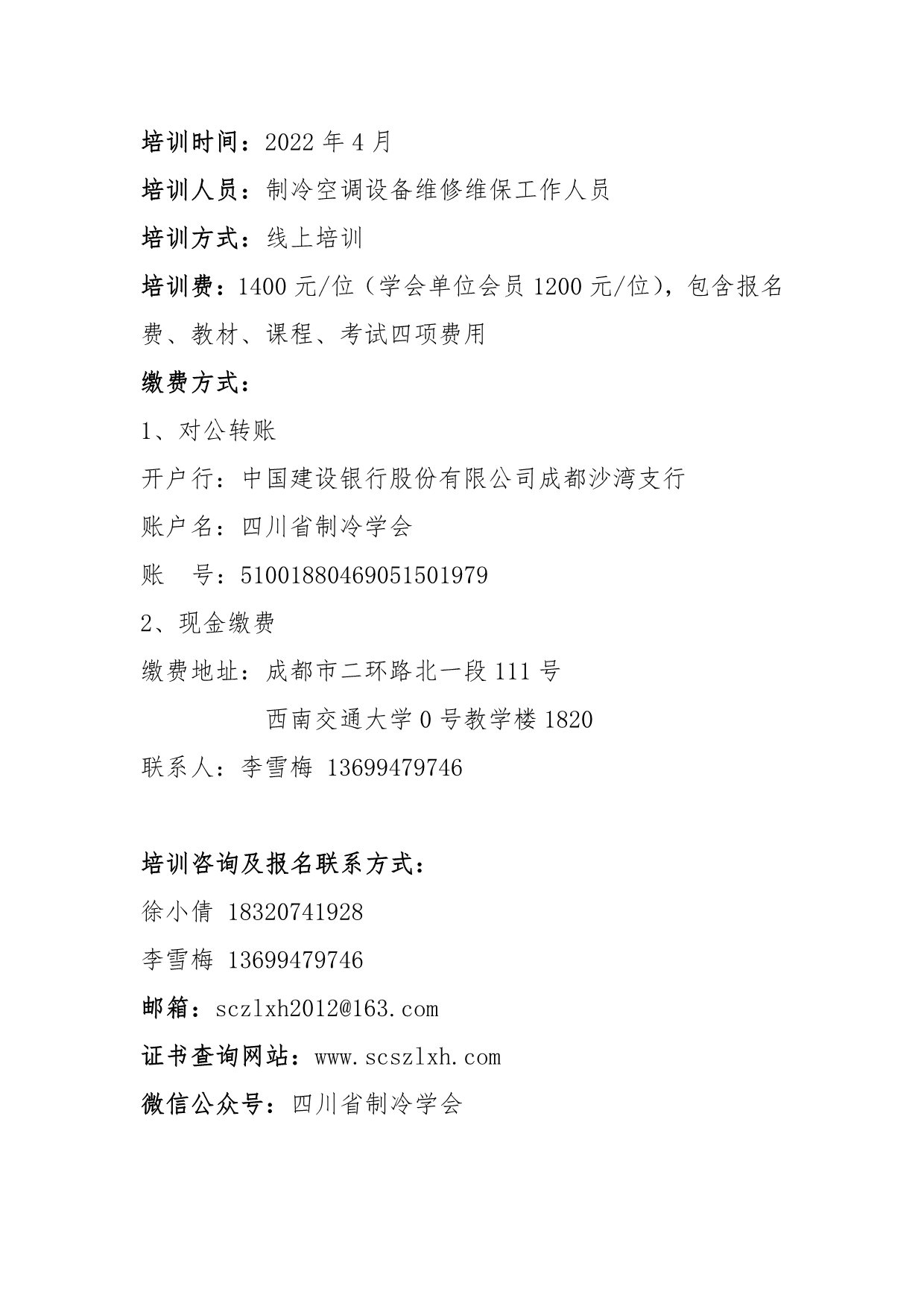 關(guān)于舉辦“第七期四川省中央空調(diào)維修維保技術(shù)人員培訓”的通知