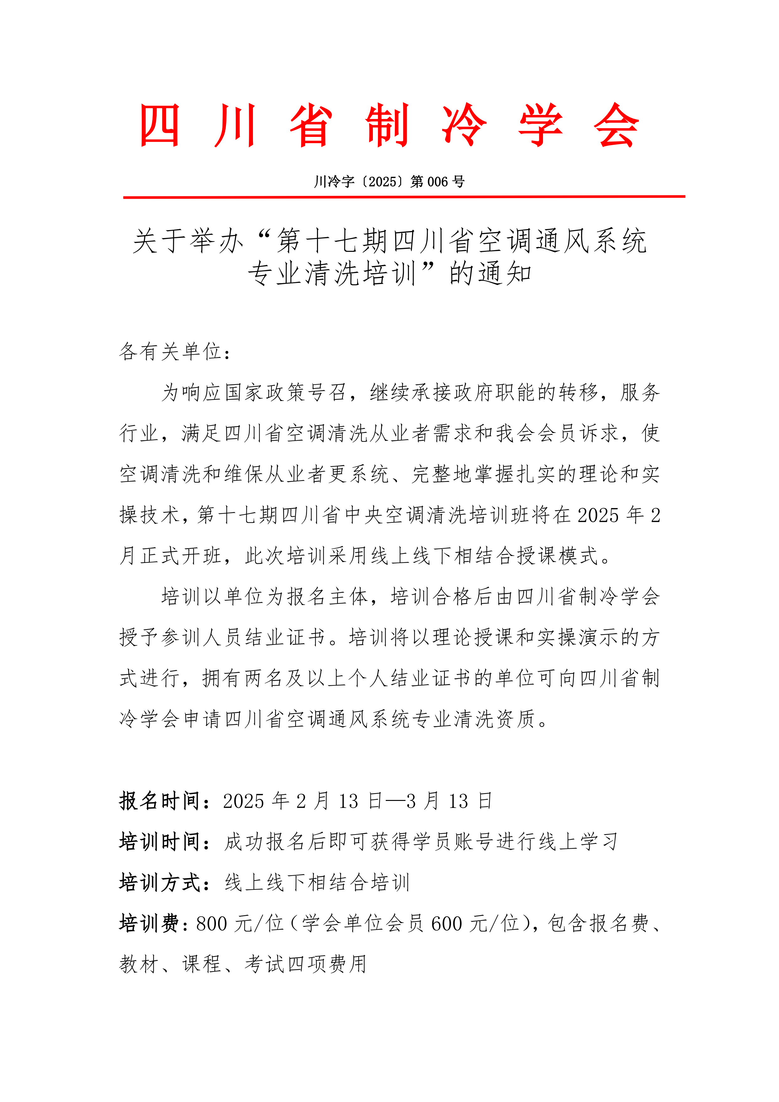 關于舉辦“第十七期四川省空調通風系統(tǒng)專業(yè)清洗培訓”的通知